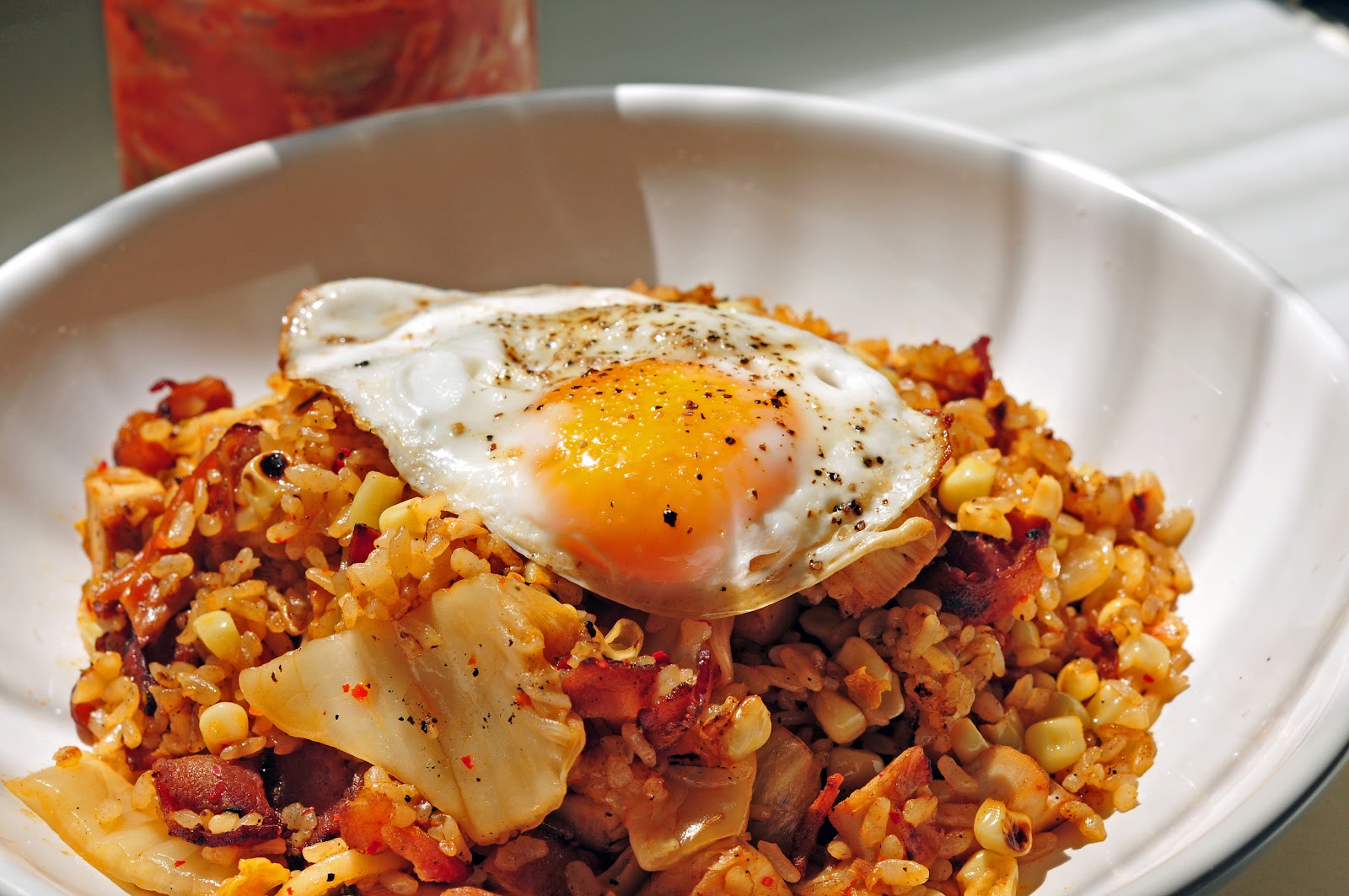 Lunch Today - Kimchi Fried Rice w/Bacon, Corn & Leftover Teriyaki Chicken